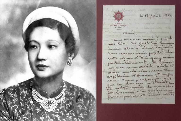 Hoàng hậu Nam Phương và một bức thư gửi cho cựu hoàng Bảo Đại. Ảnh: Tư liệu trong sách.