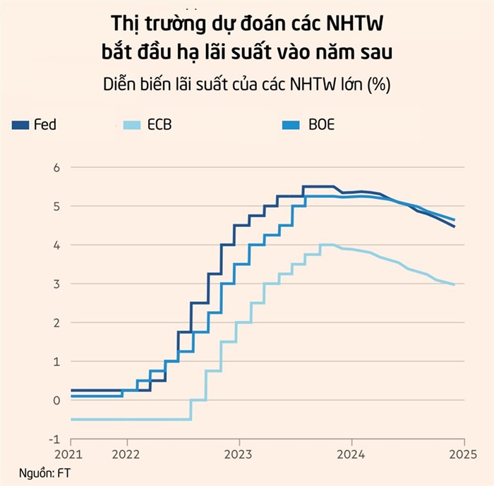 Sau đó, các nhà hoạch định chính sách tại Fed, ECB, BOE và các NHTW đã thực hiện đợt tăng lãi suất liên tiếp từ khoảng 2 năm trước. Chi phí đi vay ở châu Âu và Mỹ đã ở mức cao nhất kể từ trước cuộc khủng hoảng tài chính.