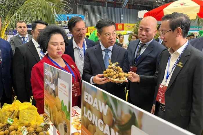 Lãnh đạo UBND TP.HCM và nhiều đại biểu cùng tìm hiểu, tham quan gian hàng trái cây tại Hội chợNgoài ra, Ban Tổ chức còn đặc biệt chú trọng đến việc kết nối các doanh nghiệp Việt Nam với các hệ thống phân phối lớn trong nước như Saigon Co.op, Satra, Mega market, Lotte Vietnam, AEON, WinCommerce, GS25, Genshai Mart, Central Retail, Farmers Market,…. Đây là cơ hội để các doanh nghiệp trong nước mở rộng kênh phân phối, thúc đẩy sự phát triển bền vững và gia tăng sự hiện diện của hàng Việt trên thị trường.