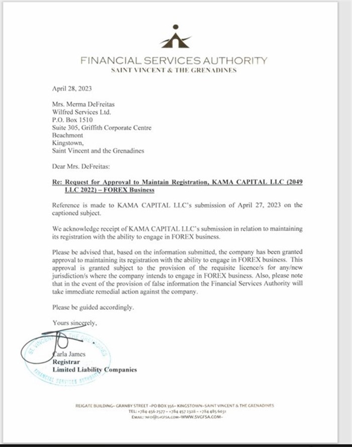 Kama Capital đã vinh dự được cấp giấy phép Financial Services Authority (FSA) vào ngày 28/04/2023. Mọi thông tin về giấy phép này được công khai và minh bạch trên website và các nền tảng mạng xã hội của Kama Capital. Không có bằng chứng nào cho thấy rằng Kama Capital là một sàn giao dịch lừa đảo. Do đó, nhà đầu tư có thể yên tâm về các vấn đề liên quan đến tiền gửi, tuân thủ các điều khoản quy định của FSA.