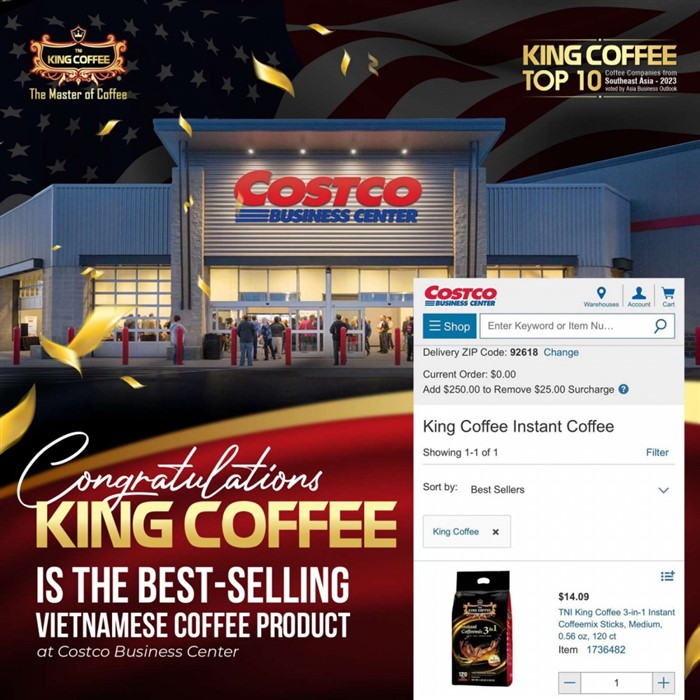 Sản phẩm cà phê hòa 3in1 của King Coffee trở thành một trong những sản phẩm được tìm mua và bán chạy nhất trên kệ hệ thống nhà bán buôn sỉ lớn nhất nước Mỹ.Trong đó, King Coffee RTD cà phê sữa đá (cà phê đóng lon uống liền) là sản phẩm thứ 2 được chọn để bán trên hệ thống Costco tại Los Angeles, California (Mỹ).