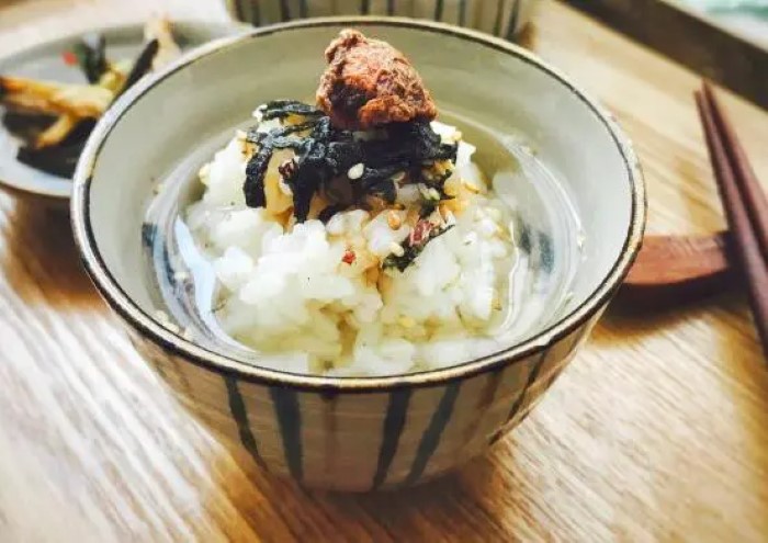 Ở Nhật Bản, trà xanh là thứ mà người dân rất yêu quý và trân trọng. Thậm chí, ở nước này còn rất phổ biến món cơm chan trà (Ochazuke). Món ăn này ngoài đem lại hương vị thanh mát, nó còn được yêu thích vì giúp hỗ trợ tiêu hóa, thúc đẩy vị giác.
