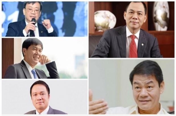 Chủ tịch Techcombank Hồ Hùng Anh lần thứ tư góp mặt trong danh sách này với 2,3 tỷ USD. Chủ tịch Masan Nguyễn Đăng Quang xuất hiện trong danh sách năm thứ hai liên tiếp, với 1,9 tỷ USD. Tỷ phú thép Trần Đình Long sở hữu 3,2 tỷ USD và đứng thứ 951 thế giới. Ông Trần Bá Dương sở hữu 1,6 tỷ USD.Chủ tịch Nova Group Bùi Thành Nhơn lần đầu xuất hiện trong danh sách của Forbes, với 2,9 tỷ USD, đứng thứ 1.053 thế giới.